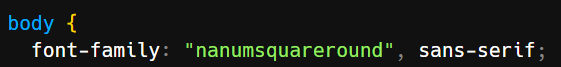 그리고 body에 폰트CSS에서 썼던 폰트명을 그대로 font-family에 선언한다.