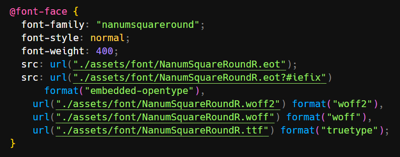 (https://css-tricks.com/snippets/css/using-font-face/ 이 사이트에서 복붙해와서 고쳐쓰는 것을 추천한다.)